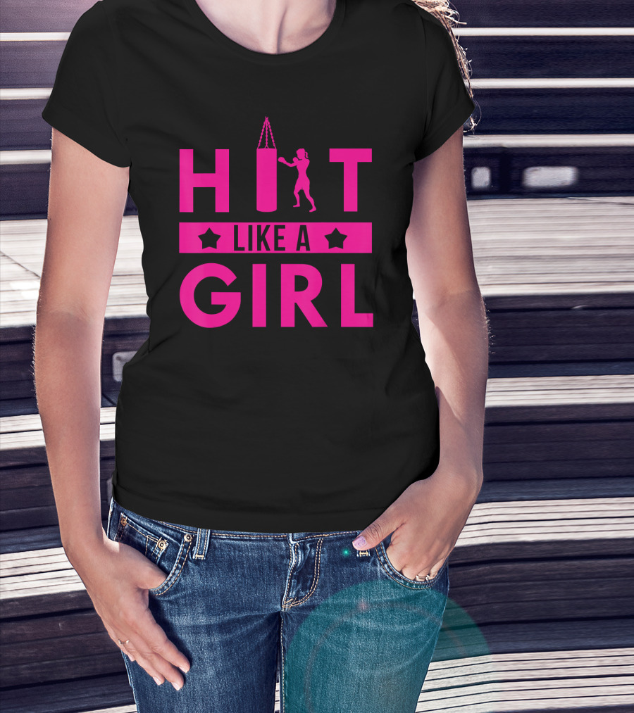 Hit Like A Girl Boxing Punching Bag Boxer T-Shirt