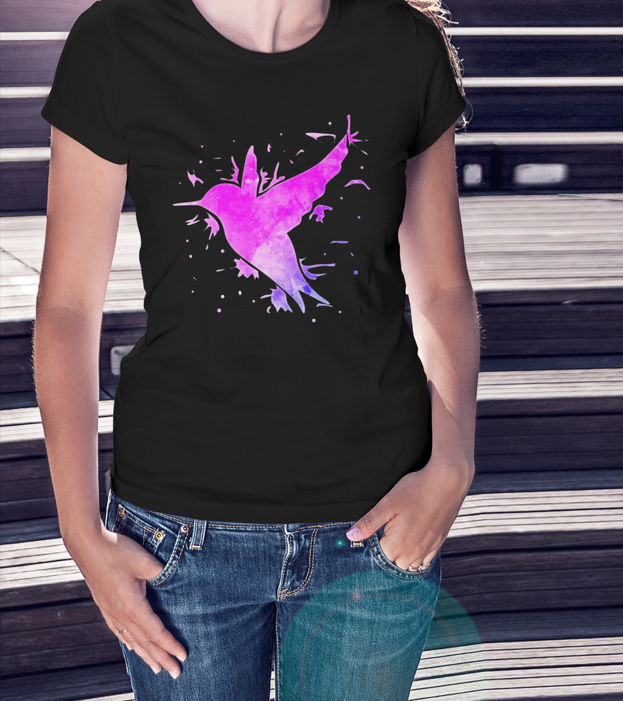 Hummingbird Watercolor Bird Ing In Flight Abstract T-Shirt