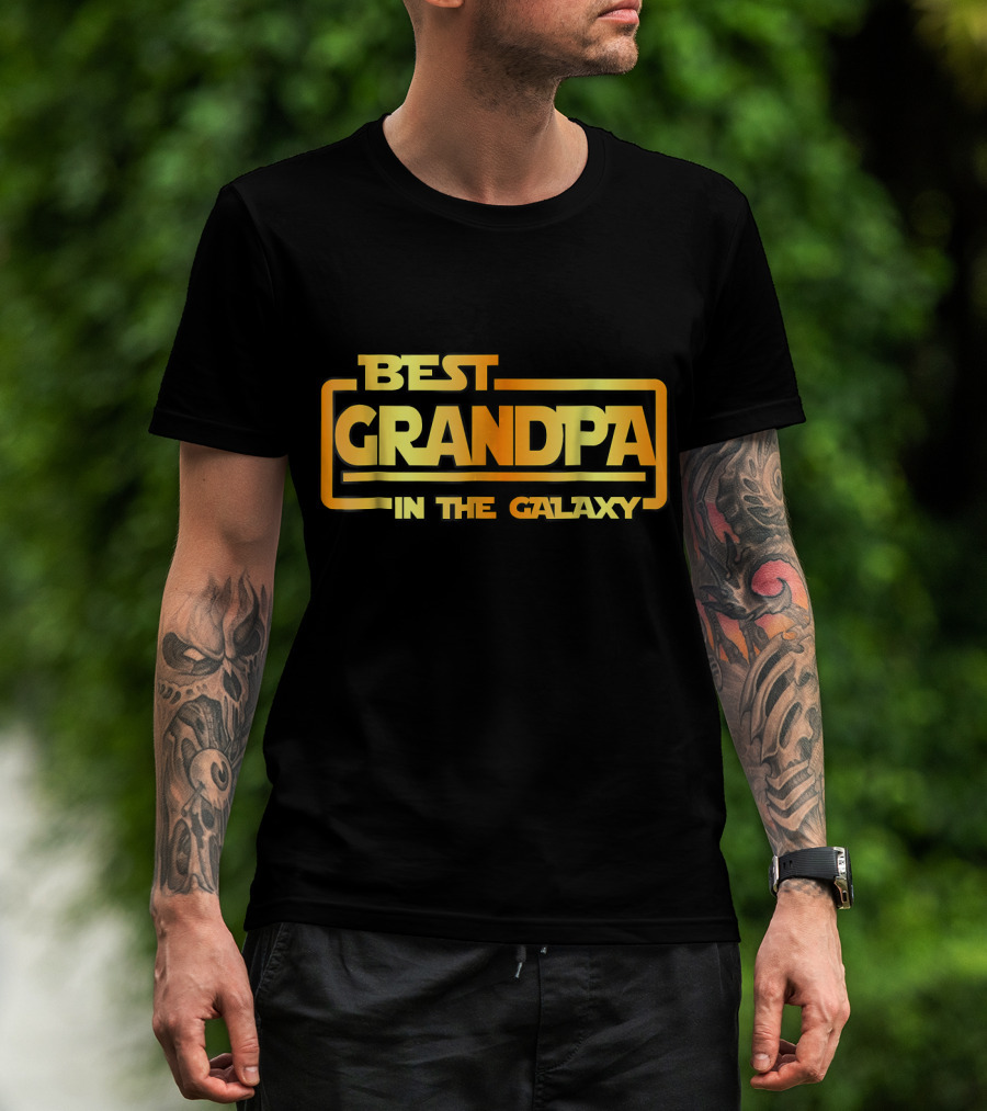 Best Grandpa In The Galaxy Bold Space Themed Text T-Shirt
