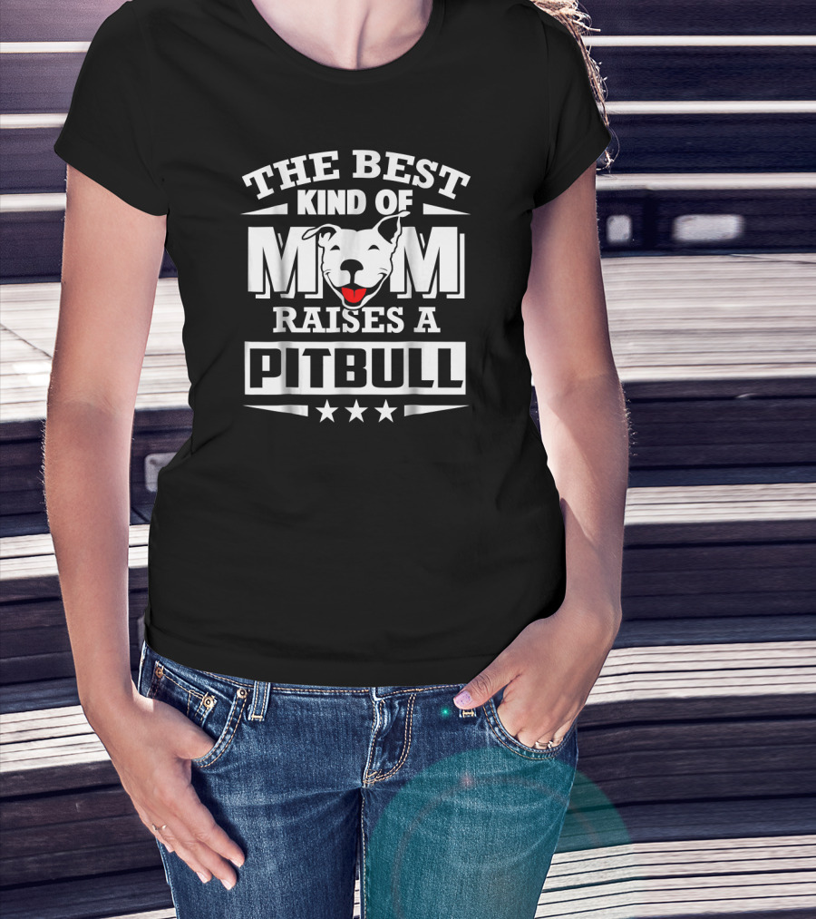The Best Kind Of Mom Raises A Pitbull With Stars And Pitbull Face T-Shirt