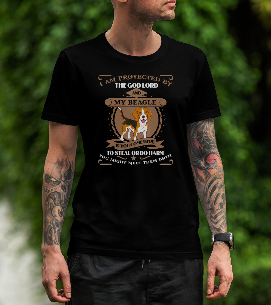 I Am Protected By The God Lord And My Beagle If You Come Here To Steal Or Do Harm You Might Meet Them Both T-Shirt