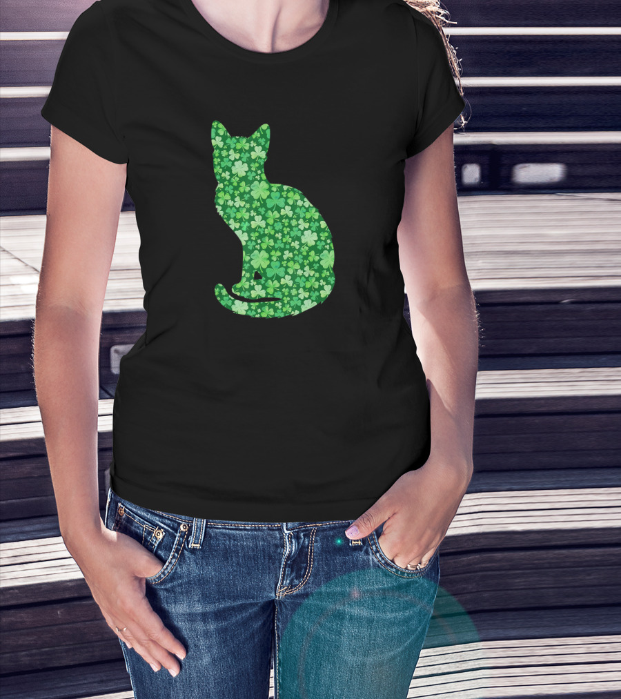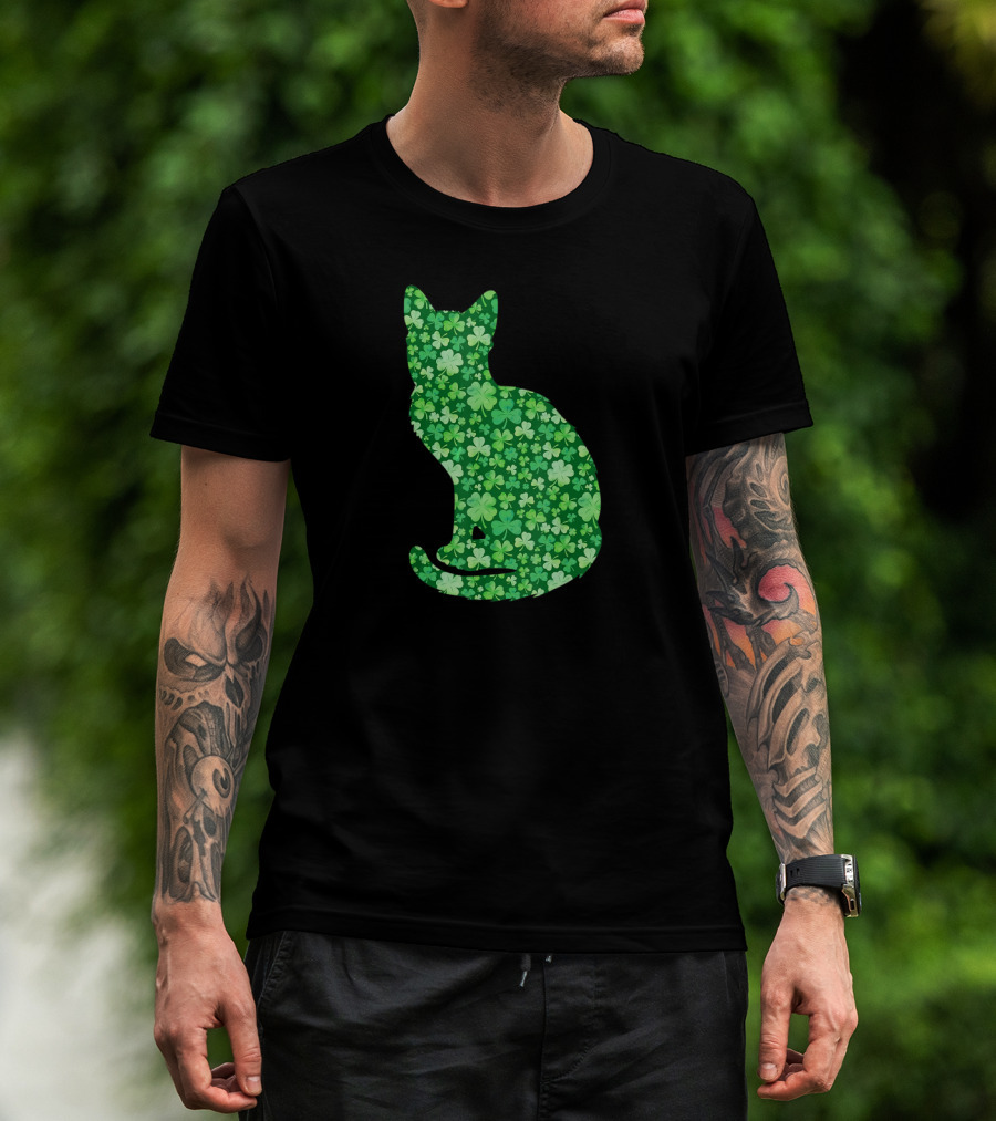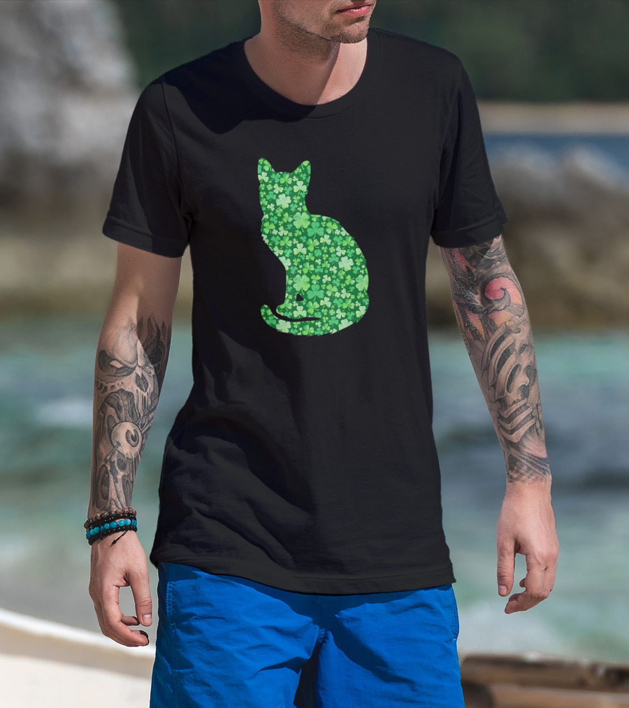 Shamrock Cat St Patrick's Day Irish Green Clover T-Shirt