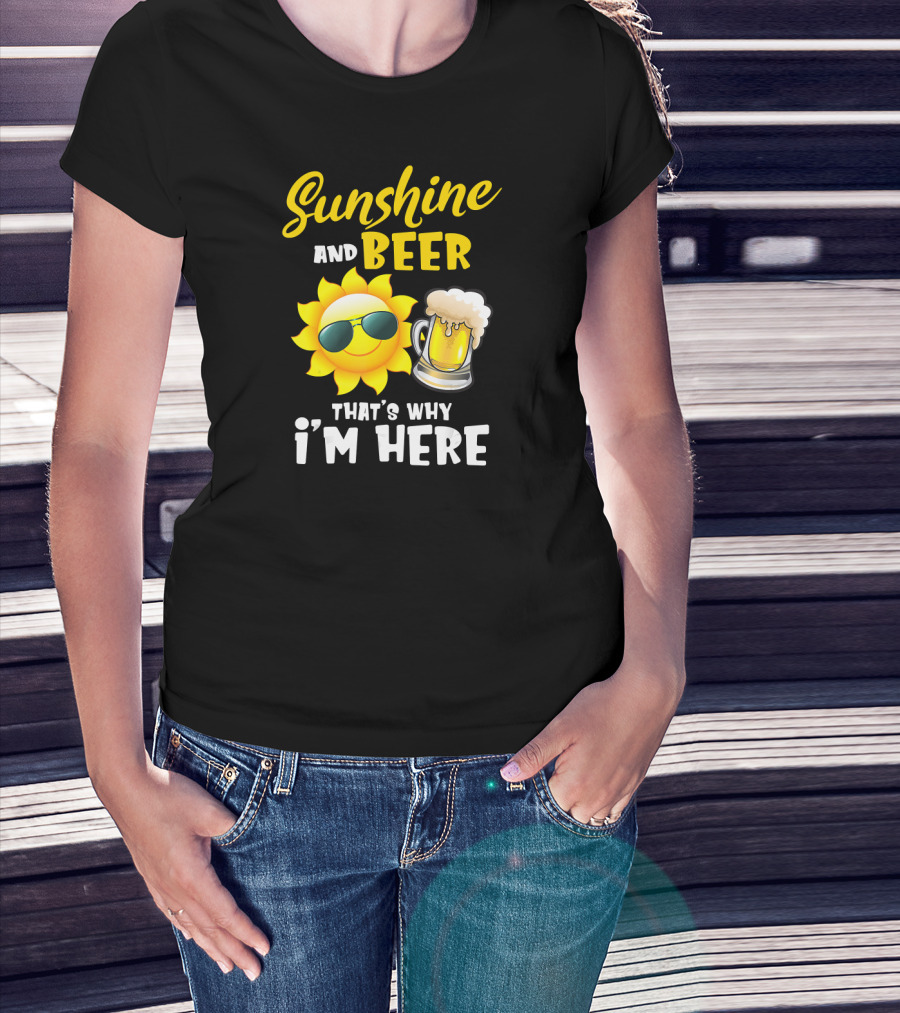 Sunshine And Beer Sun With Sunglasses And Beer Mug That's Why I'm Here T-Shirt