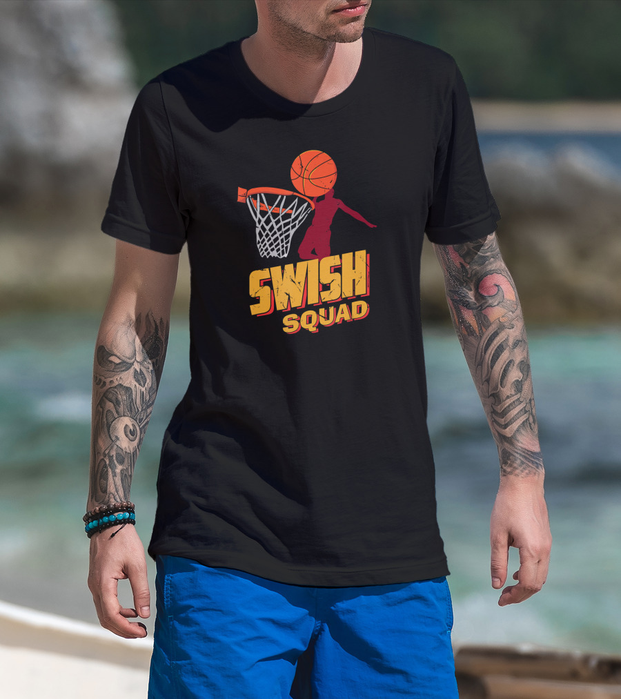 Swish Squad Basketball Player Dunking Basketball Through Hoop T-Shirt
