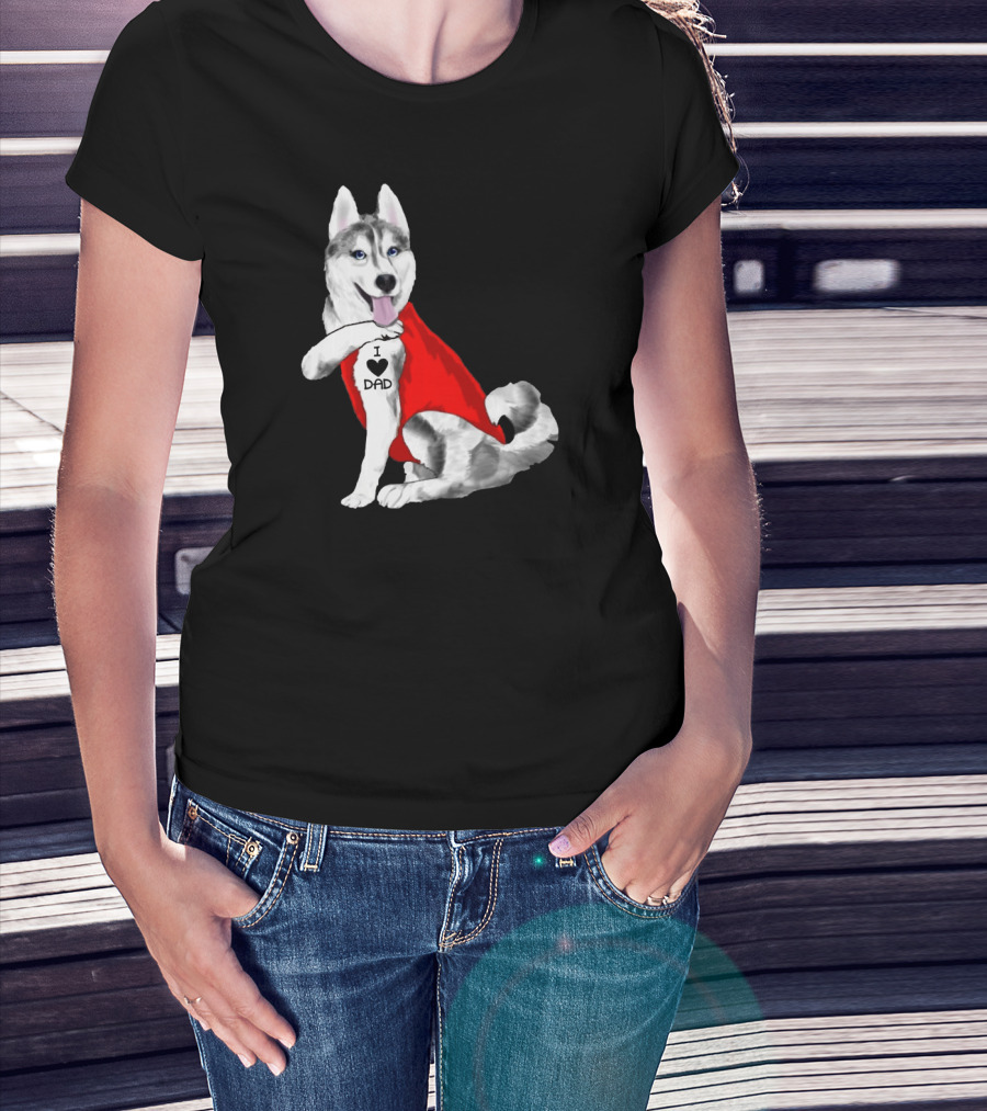 I Love Dad Husky Dog In Red Cape T-Shirt