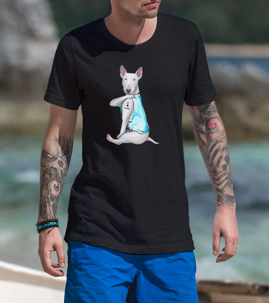 Bull Terrier I Love Dad Tattoo T-Shirt