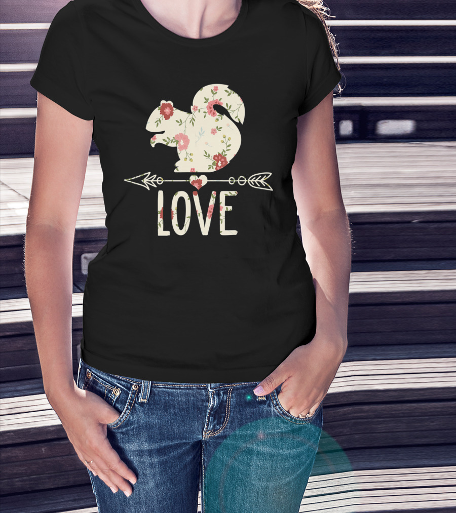Love Squirrel Floral Vintage Flower Arrow T-Shirt