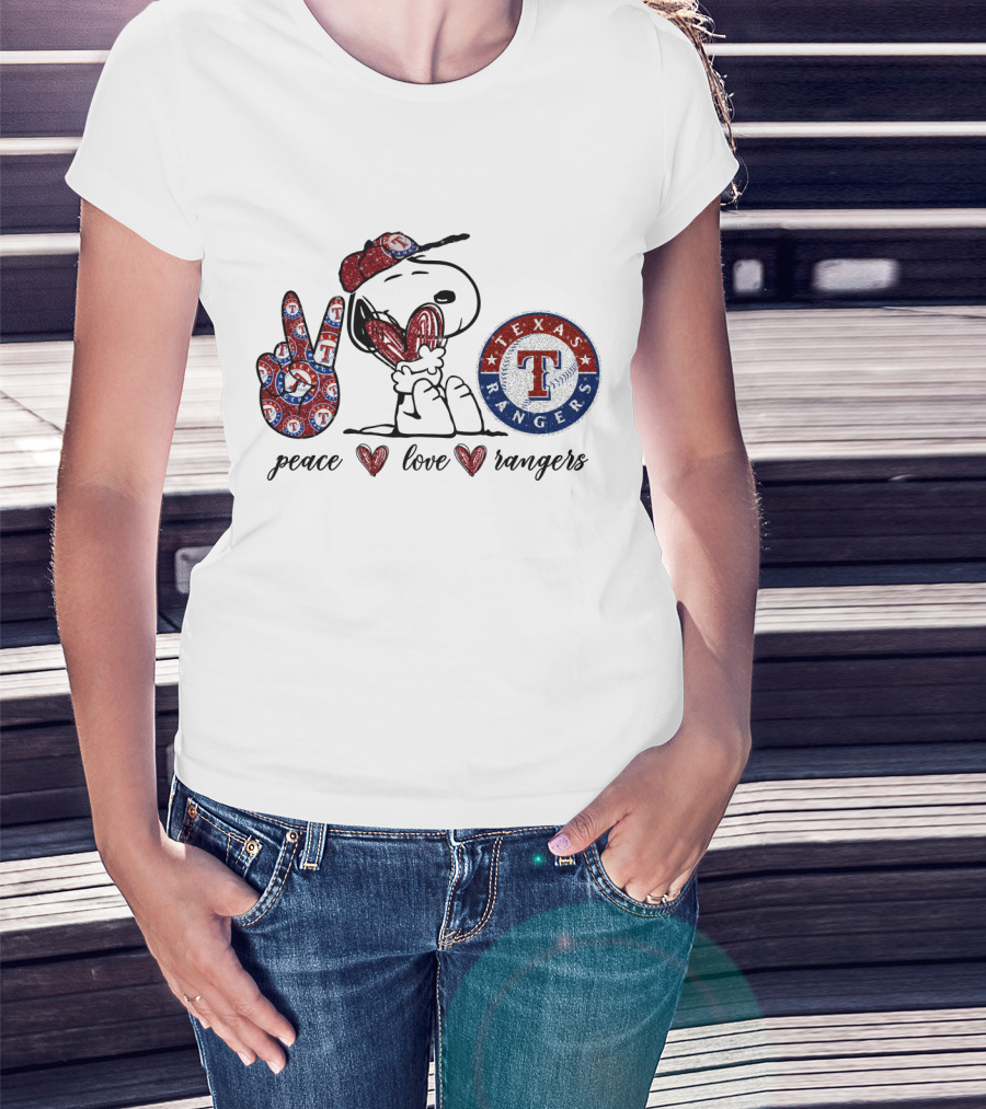 The Peace Love Snoopy Texas Rangers T-shirt is designed for everyday wear and a consistent fit. Fabric is pre-shrunk ring-spun cotton with durable stitching. See the size chart below for exact measurements.