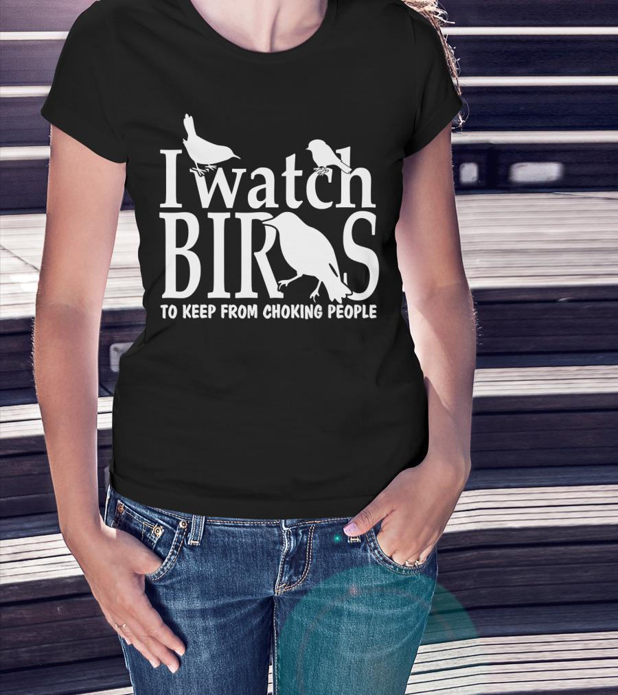 The I Watch Birds to Keep From Choking People T-shirt is designed for everyday wear and a consistent fit. Fabric is pre-shrunk ring-spun cotton with durable stitching. See the size chart below for exact measurements.