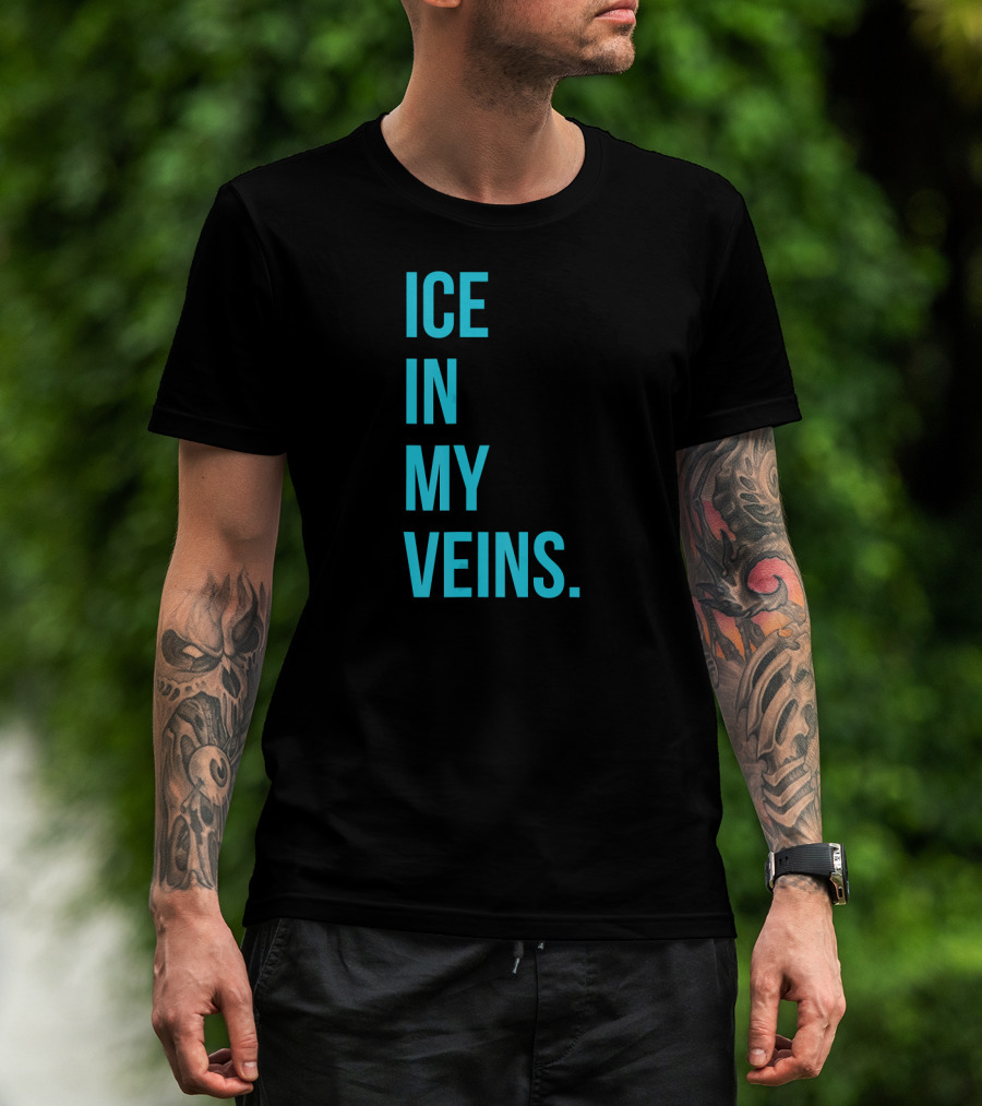 The ICE IN MY VEINS T-shirt is designed for everyday wear and a consistent fit. Fabric is pre-shrunk ring-spun cotton with durable stitching. See the size chart below for exact measurements.