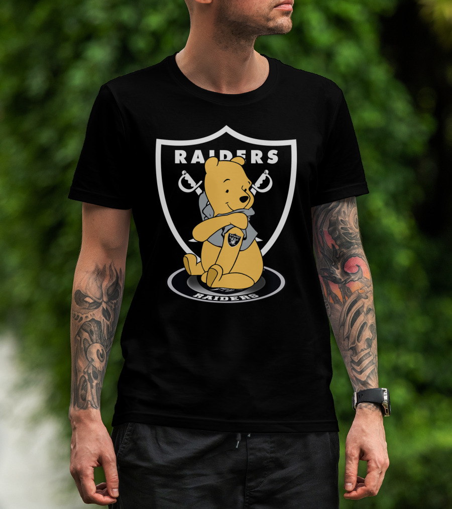 Pooh Hugging Raiders Football Emblem T-Shirt