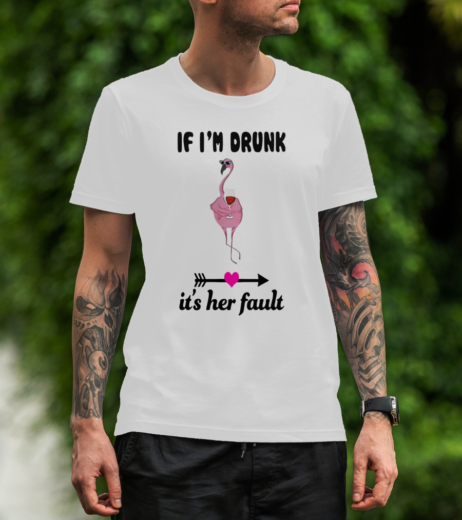 IF I'M DRUNK It's Her Fault Flamingo With Wine Glass Arrow Heart T-Shirt