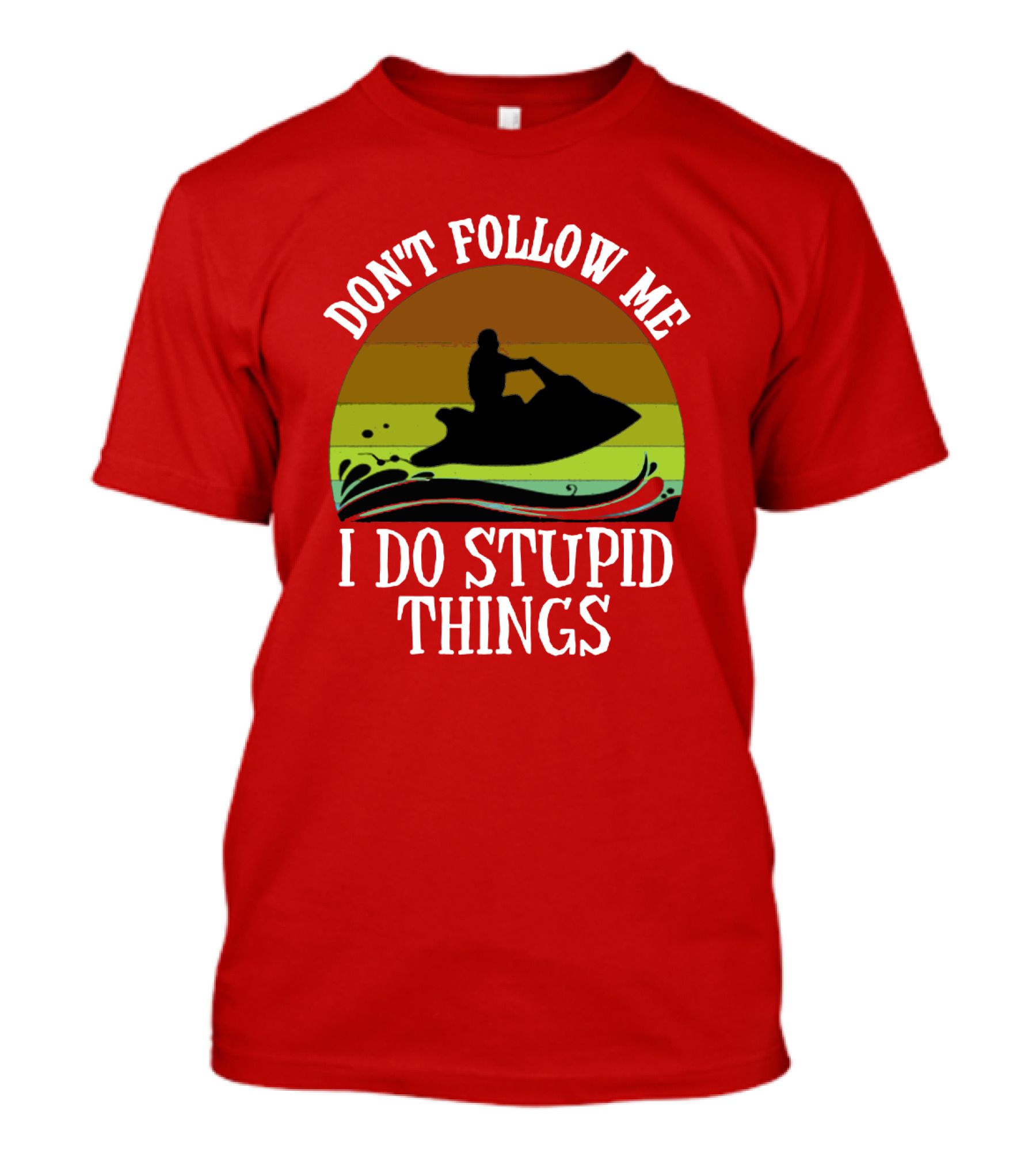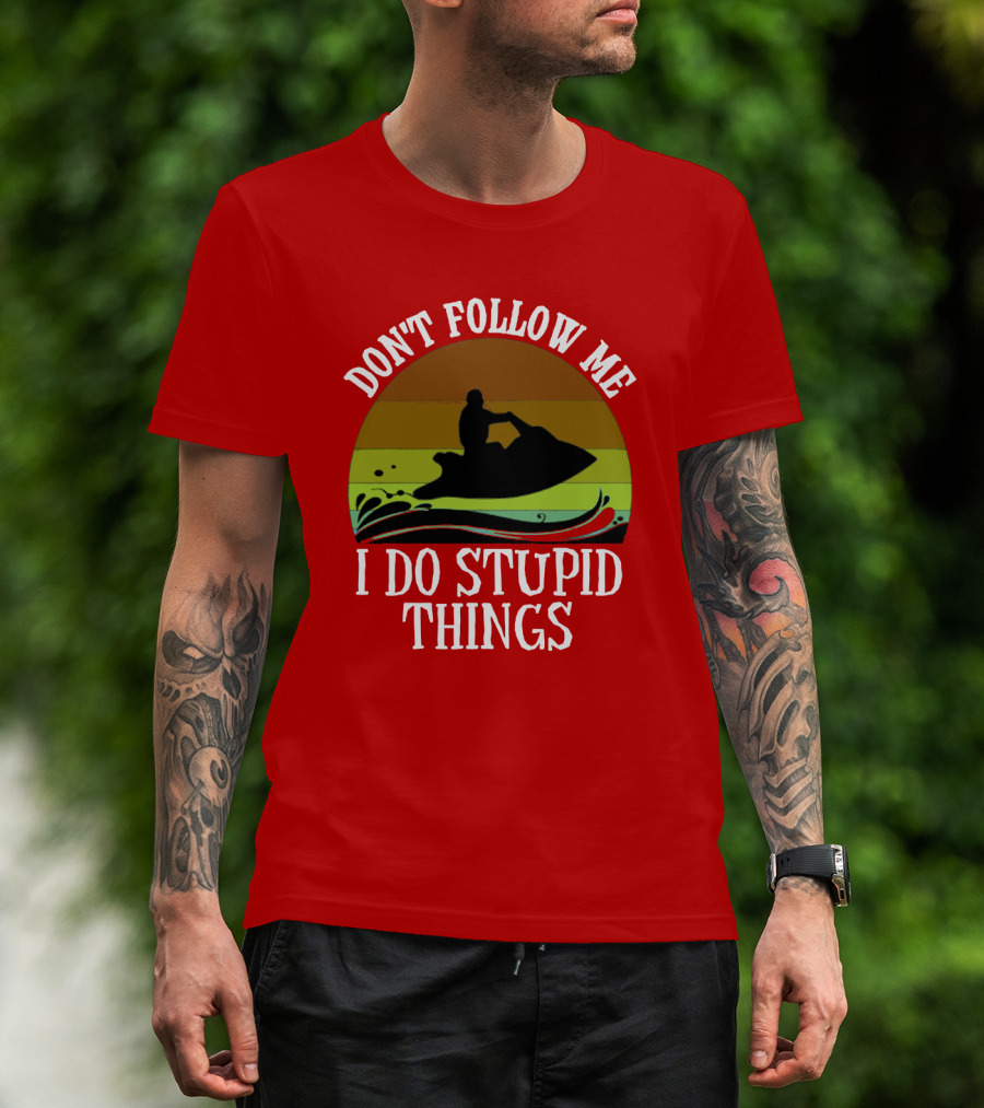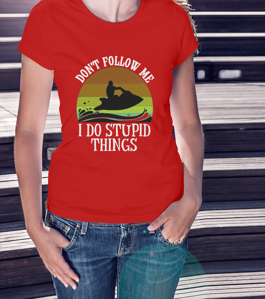 Don't Follow Me I Do Stupid Things Jet Ski Retro Sunset T-Shirt