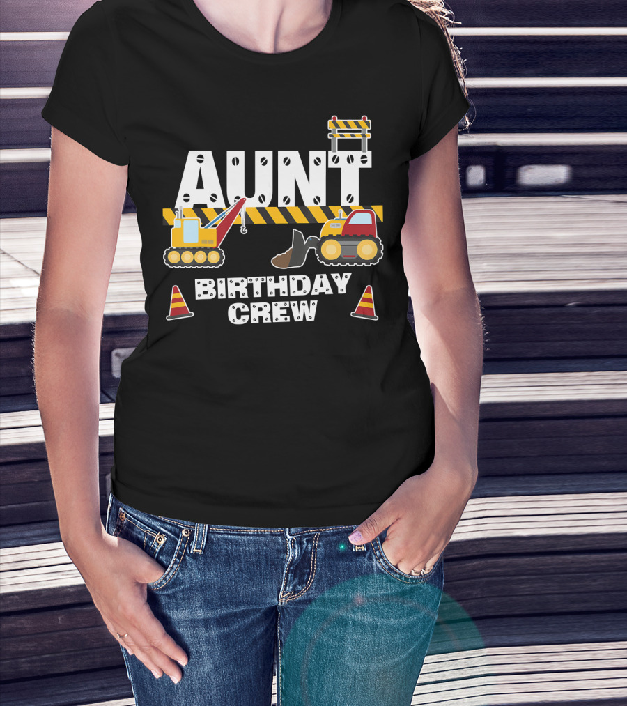 The Aunt Birthday Crew Construction Theme with Digger and Cone Graphics T-shirt is designed for everyday wear and a consistent fit. Fabric is pre-shrunk ring-spun cotton with durable stitching. See the size chart below for exact measurements.