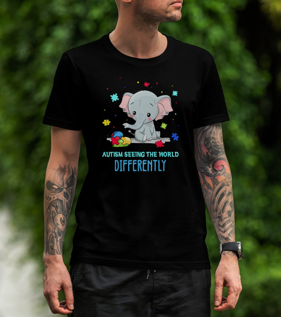 Autism Seeing The World Differently Elephant Puzzle Pieces T-Shirt