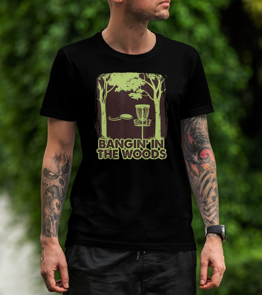 Bangin In The Woods Funny Disc Golf Frisbee Forest Scene T-Shirt