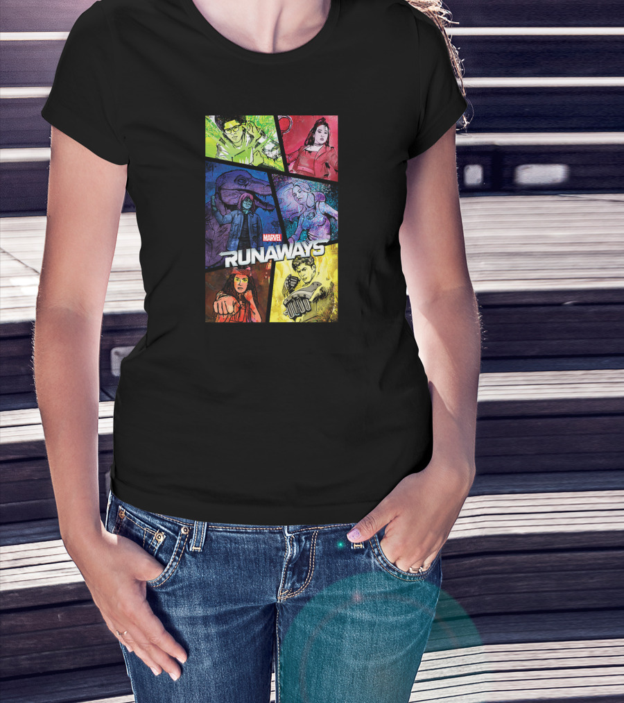 Marvel Runaways Character Color Block Grid With Comic Style T-Shirt
