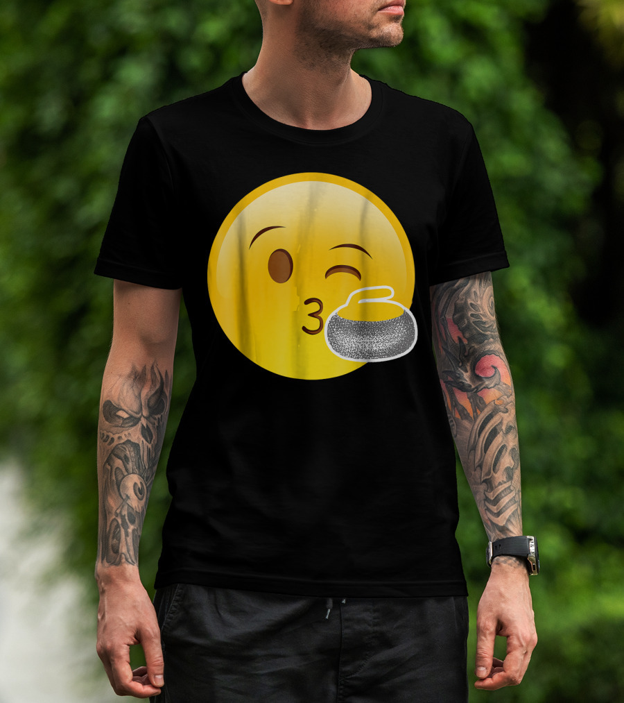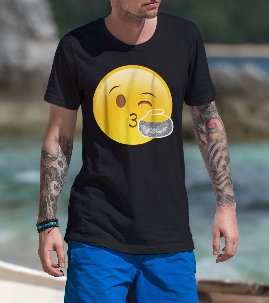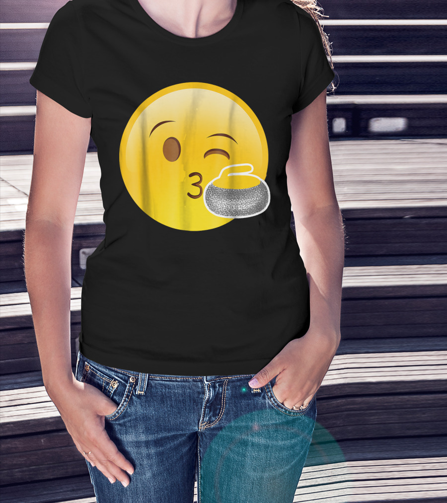 Emoji Kiss Winking Face Curling Stone Awesome Sport League T-Shirt