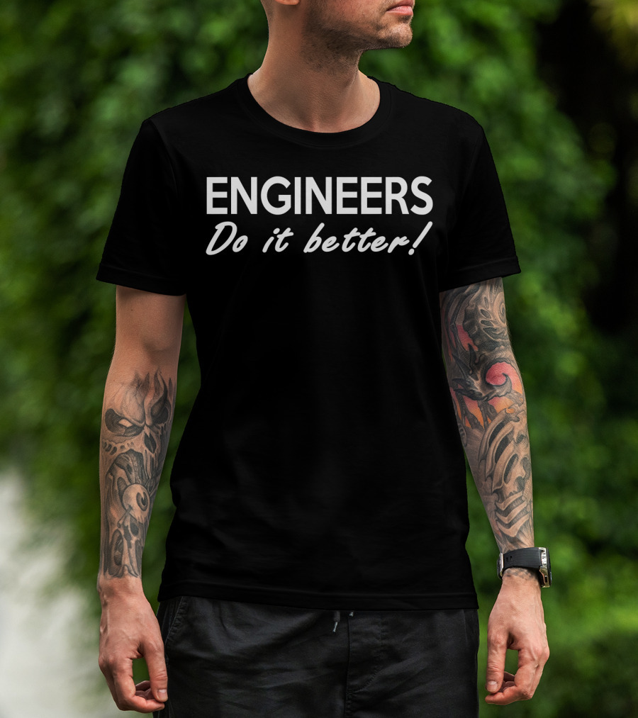 The Engineers Do It Better Birthday T-shirt is designed for everyday wear and a consistent fit. Fabric is pre-shrunk ring-spun cotton with durable stitching. See the size chart below for exact measurements.