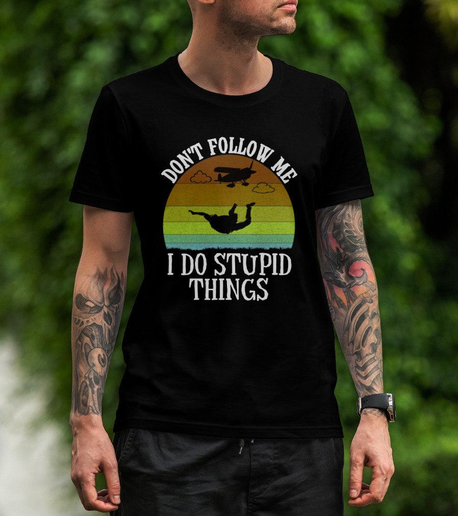 Don't Follow Me I Do Stupid Things Skydiving Airplane Sunset T-Shirt