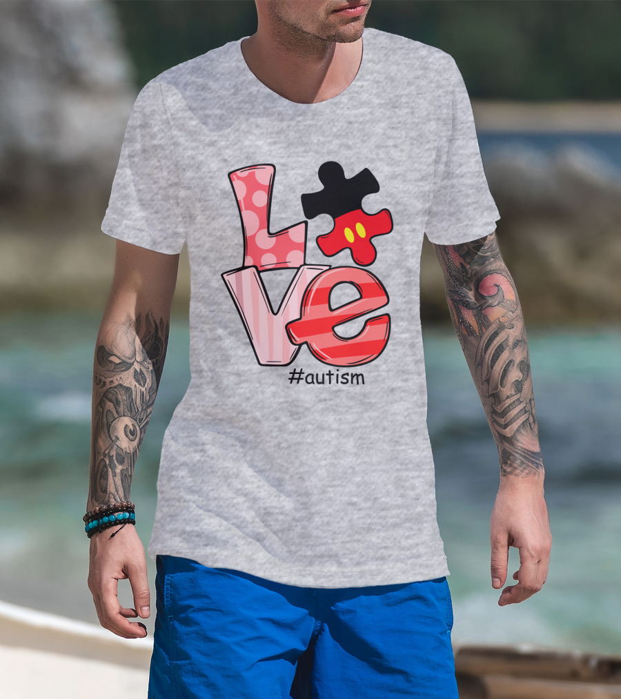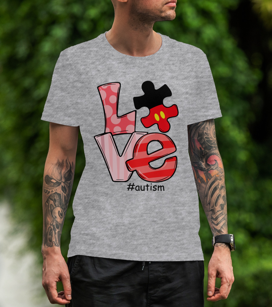 LOVE Autism #autism Puzzle Piece Mouse T-Shirt
