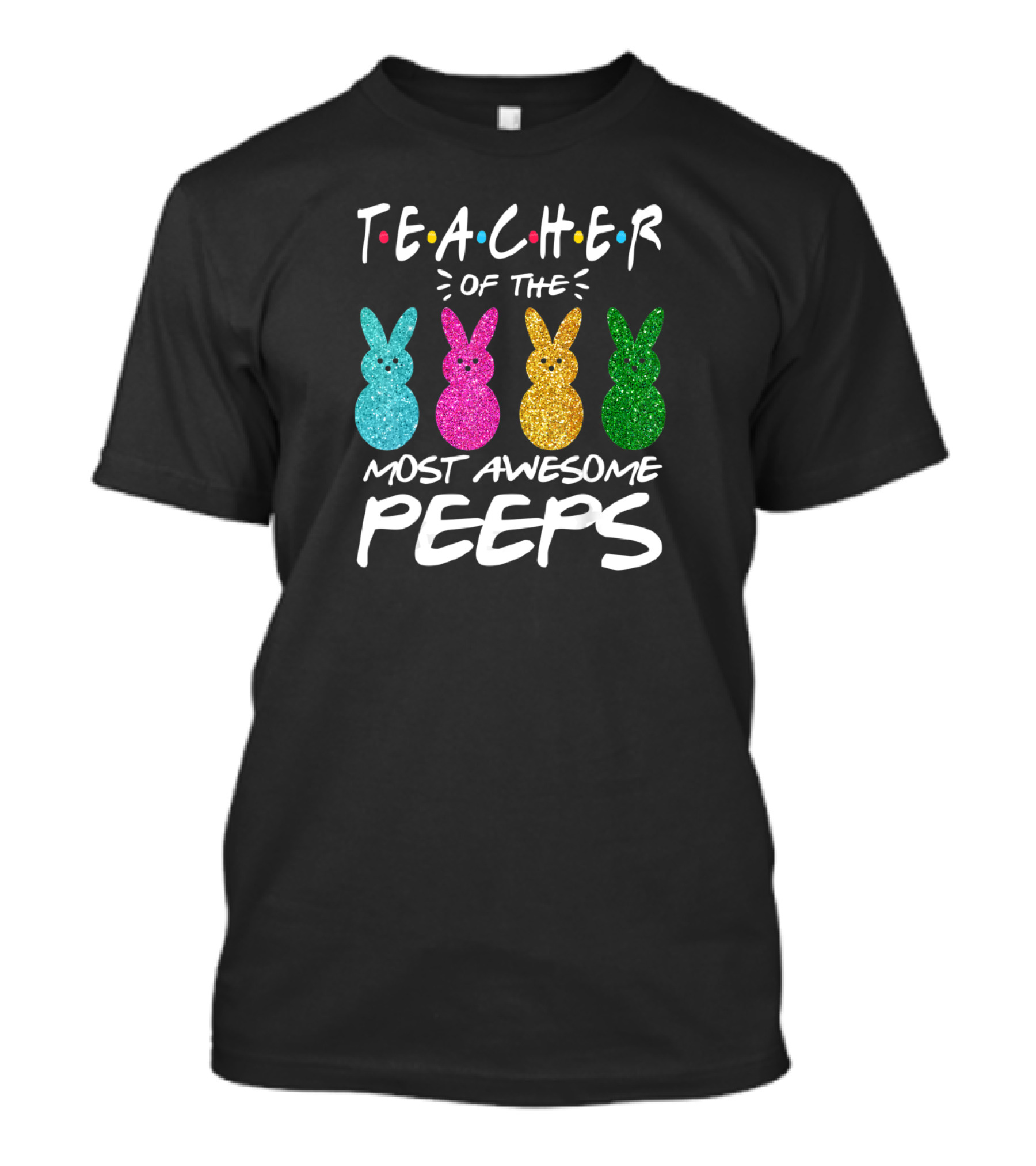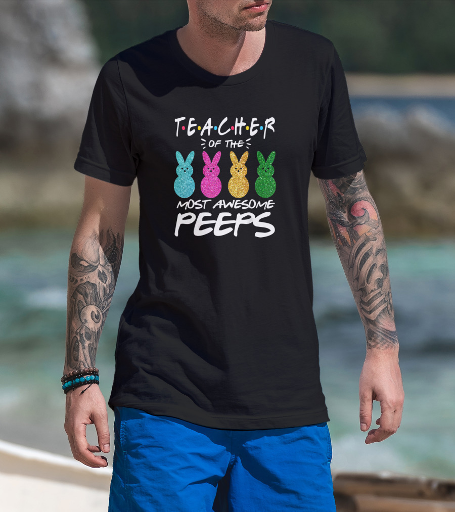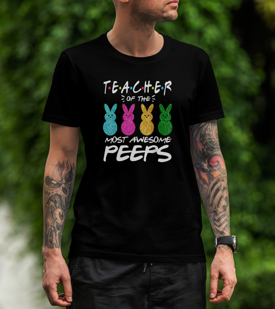 Teacher Of The Most Awesome Peeps Easter Day Colorful Glitter Bunnies T-Shirt