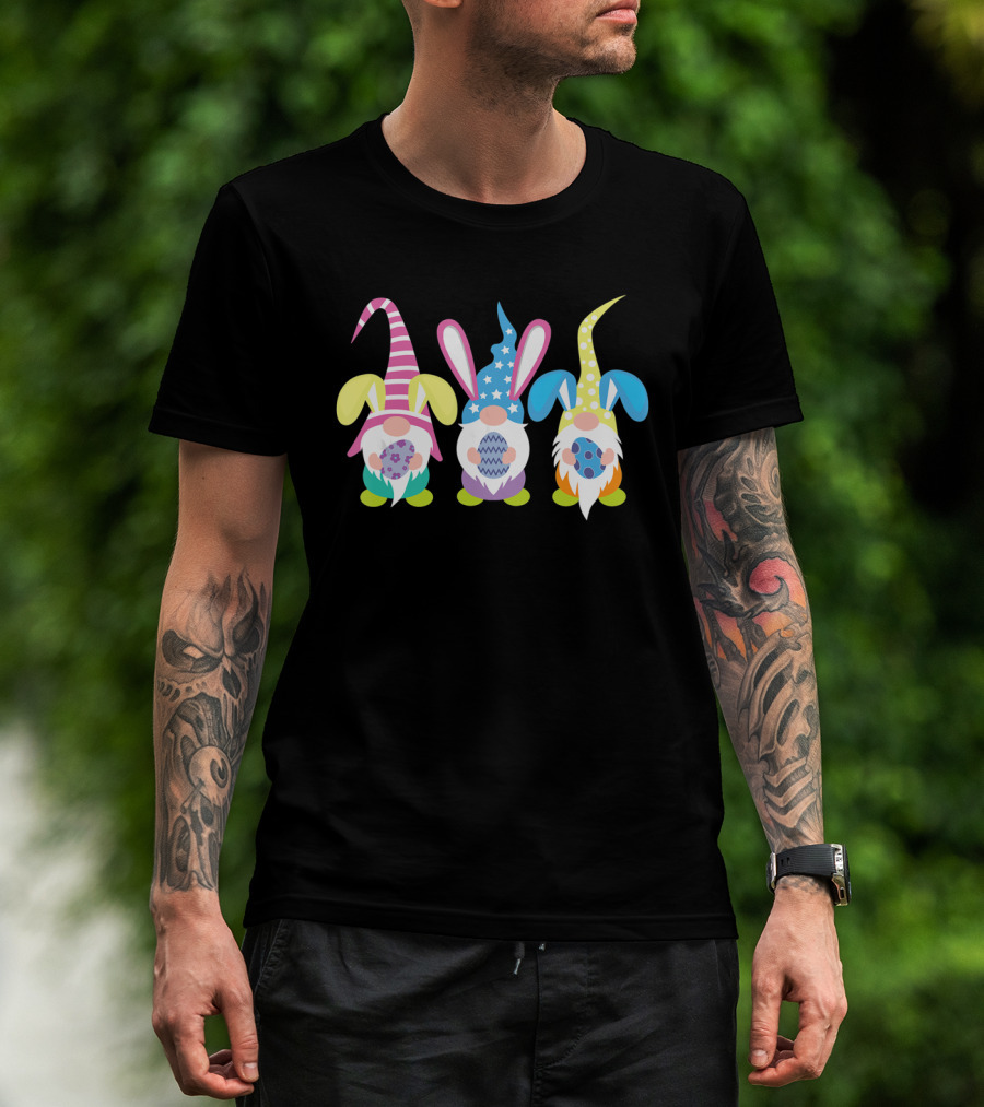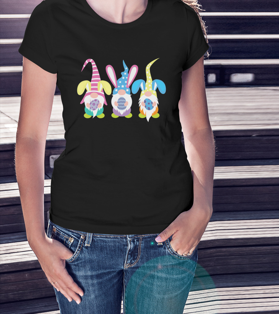 Easter Gnomes With Colorful Bunny Ears Holding Decorated Eggs T-Shirt