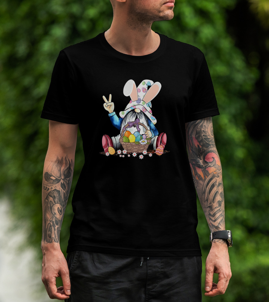 Funny Easter Hippie Gnome With Eggs And Peace Sign T-Shirt