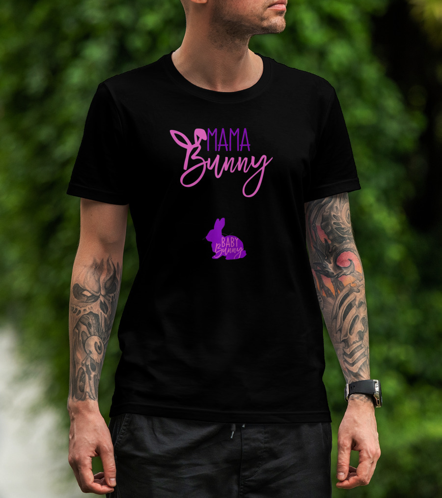 The MAMA BUNNY Baby Bunny Pregnant Lady Easter Pregnancy Mama T-shirt is designed for everyday wear and a consistent fit. Fabric is pre-shrunk ring-spun cotton with durable stitching. See the size chart below for exact measurements.
