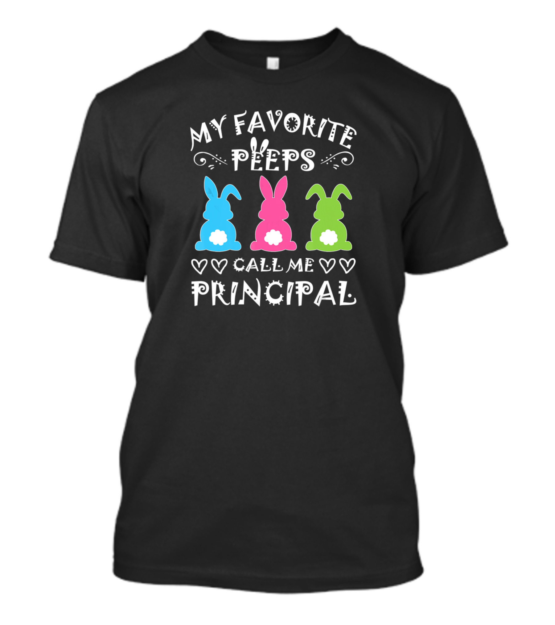 The My Favorite Peeps Call Me Principal Easter Bunny Hearts T-shirt is designed for everyday wear and a consistent fit. Fabric is pre-shrunk ring-spun cotton with durable stitching. See the size chart below for exact measurements.