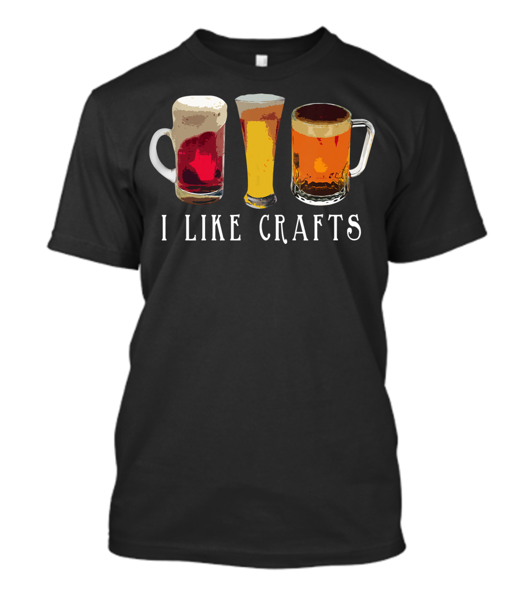 The I Like Crafts Beer with Three Beer Glasses T-shirt is designed for everyday wear and a consistent fit. Fabric is pre-shrunk ring-spun cotton with durable stitching. See the size chart below for exact measurements.