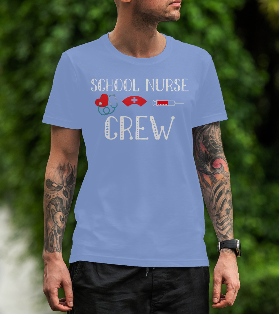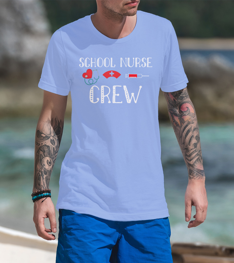 School Nurse Crew Heart Stethoscope Cap Syringe T-Shirt