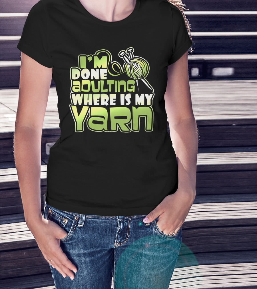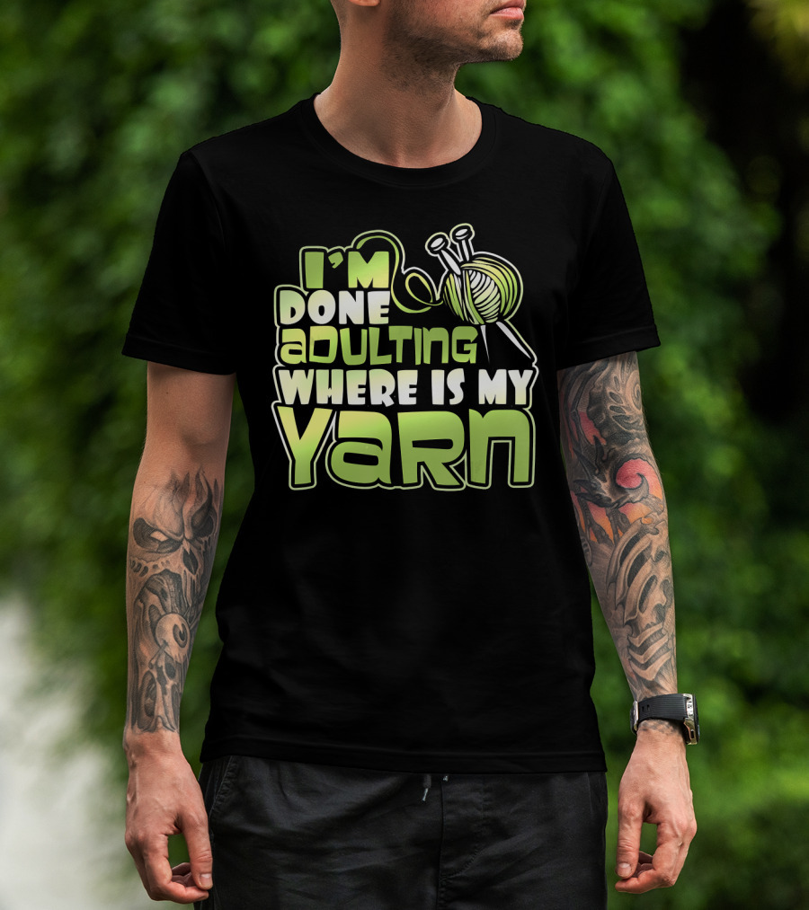 I'm Done Adulting Where Is My Yarn Knitting Needles And Ball T-Shirt