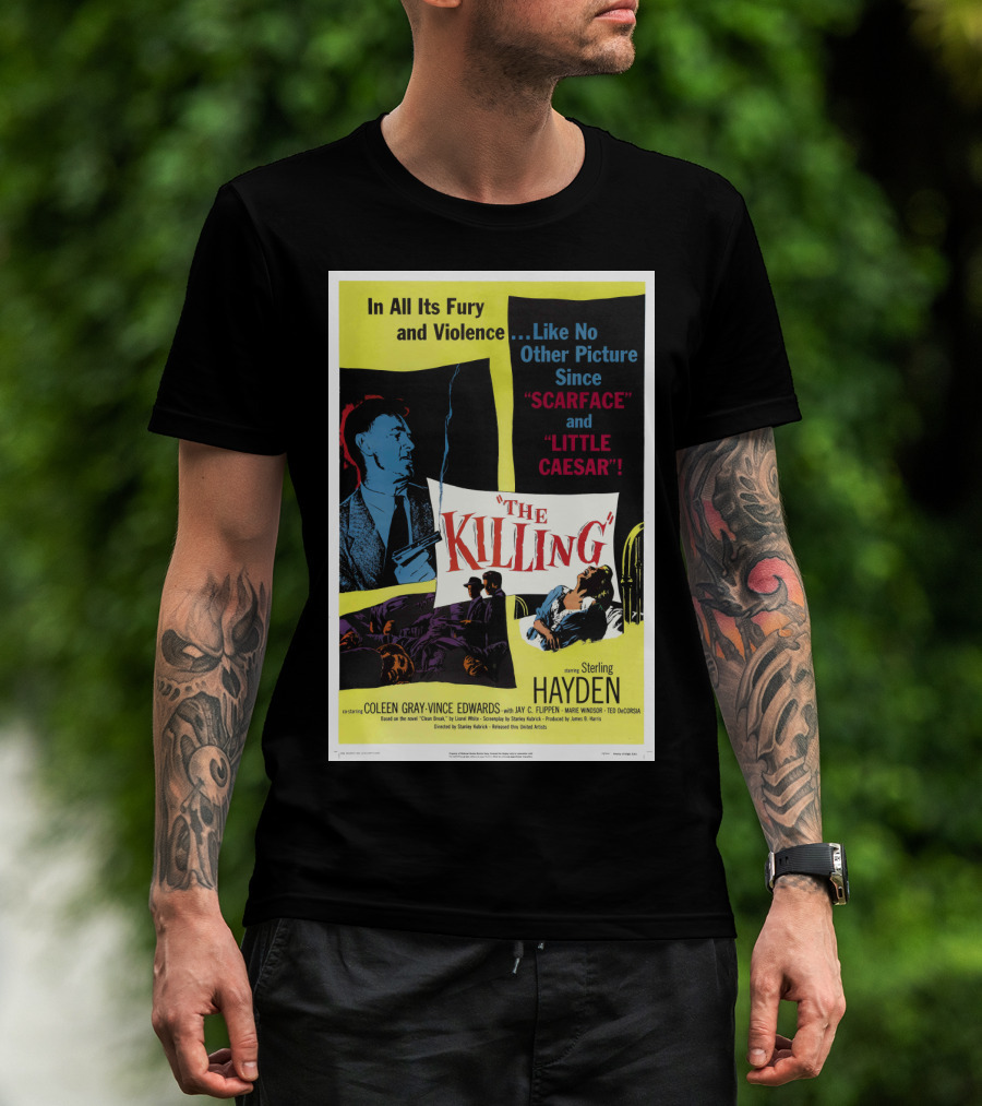 The In All Its Fury and Violence The Killing 1956 Like No Other Picture Since Scarface and Little Caesar T-shirt is designed for everyday wear and a consistent fit. Fabric is pre-shrunk ring-spun cotton with durable stitching. See the size chart below for exact measurements.