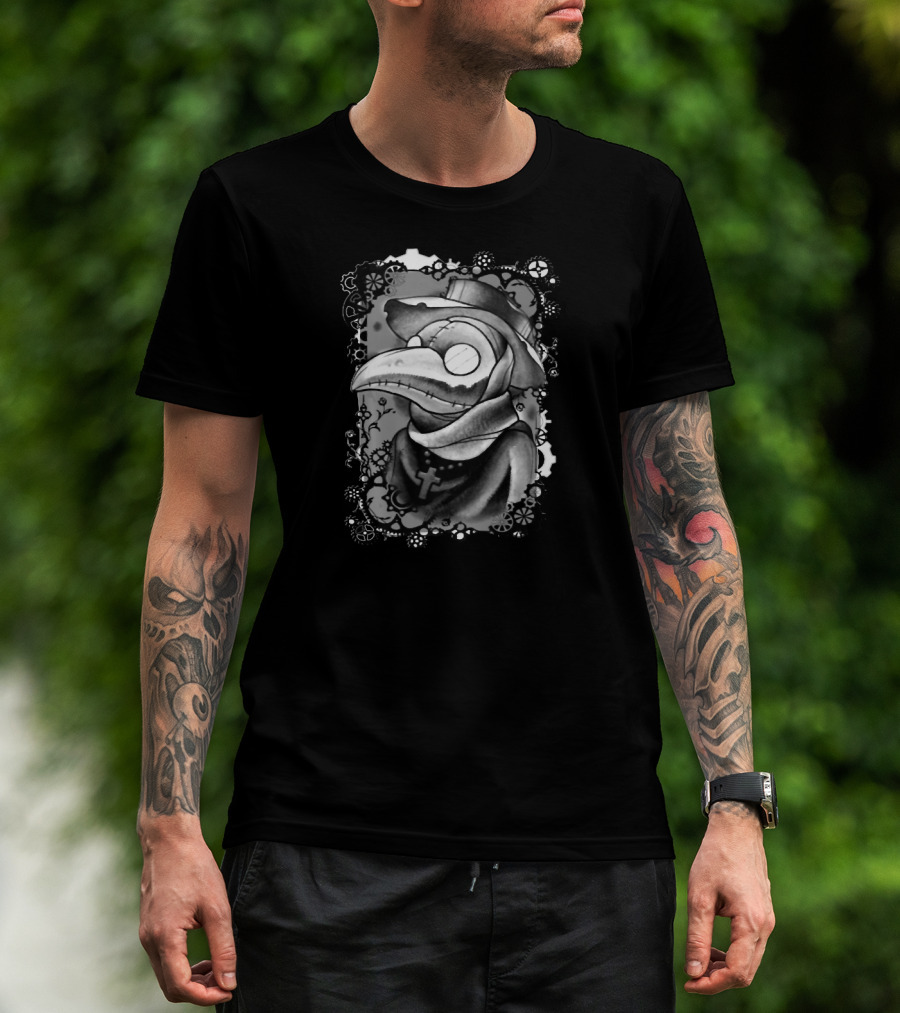 The Plague Doctor Mask Steampunk Gear Gothic Frame T-shirt is designed for everyday wear and a consistent fit. Fabric is pre-shrunk ring-spun cotton with durable stitching. See the size chart below for exact measurements.