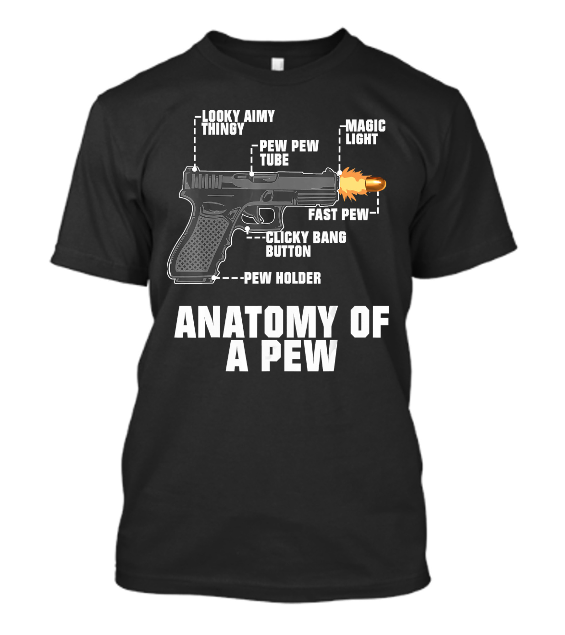 Anatomy Of A Pew Looky Aimy Thingy Pew Pew Tube Magic Light Fast Pew Clicky Bang Button Pew Holder T-Shirt