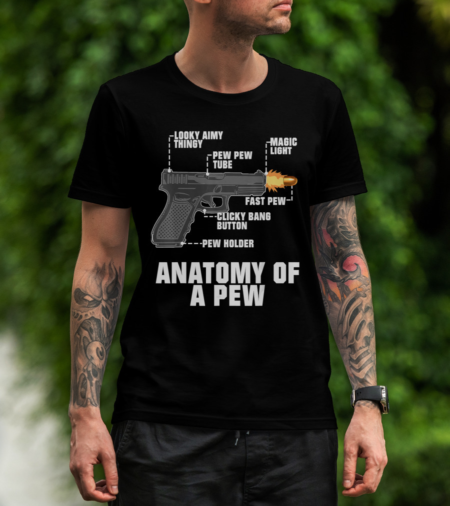 The Anatomy Of A Pew Looky Aimy Thingy Pew Pew Tube Magic Light Fast Pew Clicky Bang Button Pew Holder T-shirt is designed for everyday wear and a consistent fit. Fabric is pre-shrunk ring-spun cotton with durable stitching. See the size chart below for exact measurements.