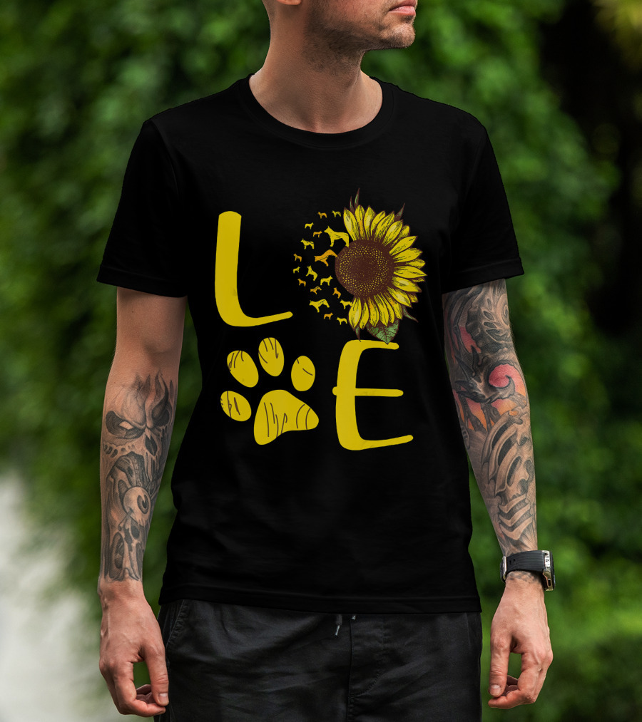 LOVE Australian Cattle Dog Paw Sunflower T-Shirt