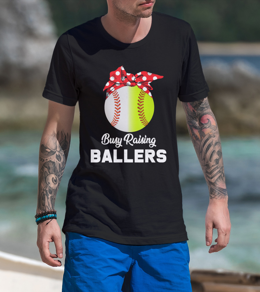 Busy Raising Ballers Baseball Softball Bow T-Shirt