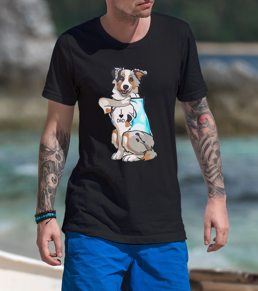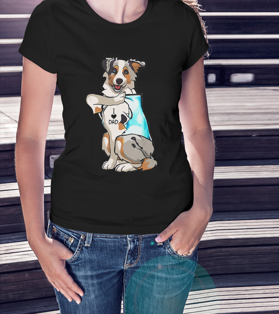 Australian Shepherd Dog I Love Dad Tattoo Paws Up T-Shirt