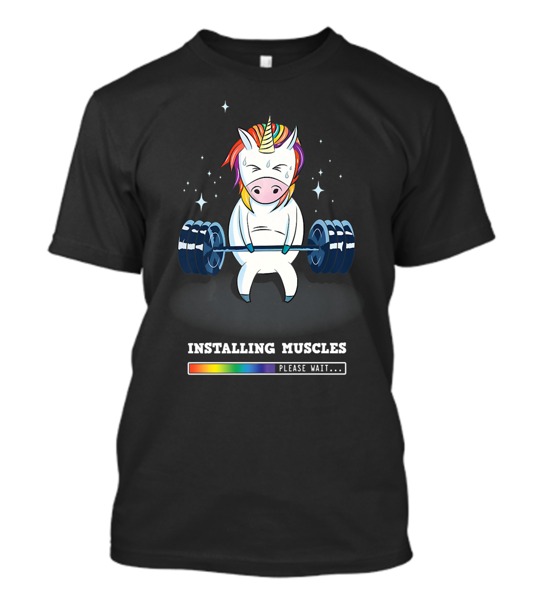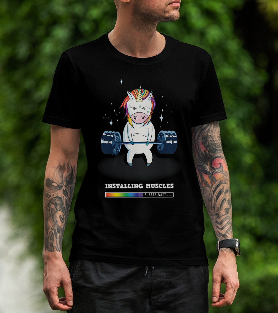Installing Muscles Please Wait Weightlifting Unicorn Fitness T-Shirt