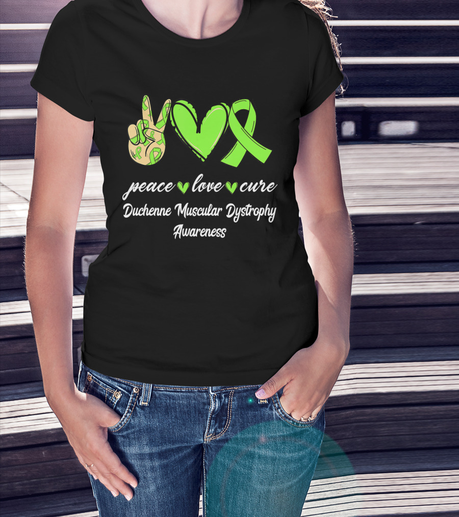 Peace Love Cure Duchenne Muscular Dystrophy Awareness Lime Green T-Shirt