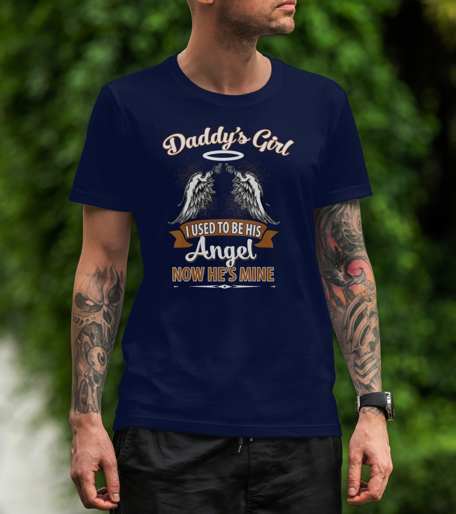 The Daddy's Girl I Used To Be His Angel Now He's Mine Halo Wings T-shirt is designed for everyday wear and a consistent fit. Fabric is pre-shrunk ring-spun cotton with durable stitching. See the size chart below for exact measurements.