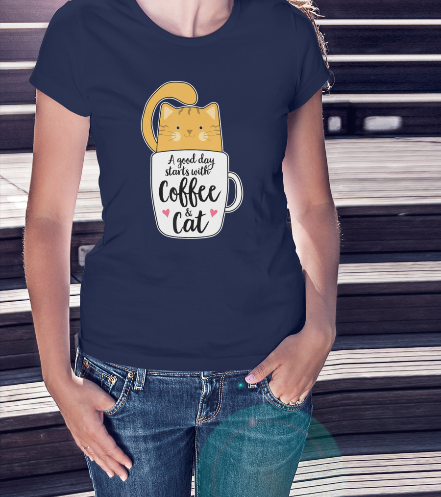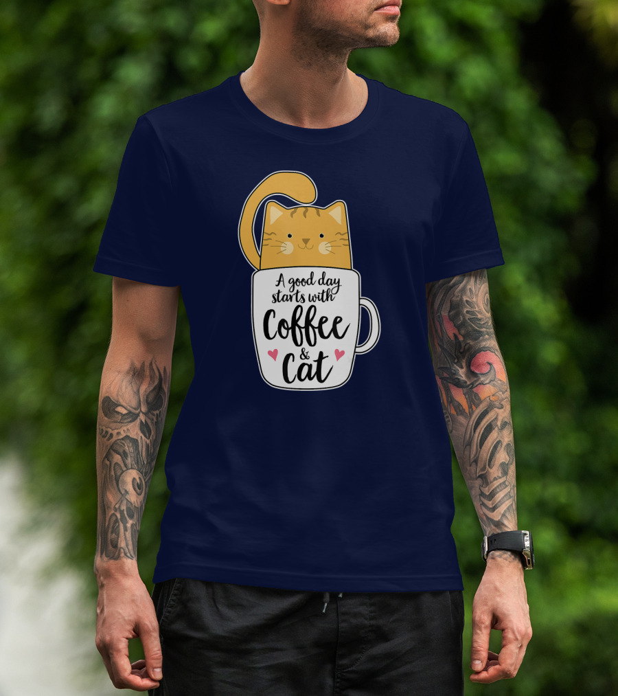 Funny Orange Cat A Good Day Starts With Coffee And Cat T-Shirt