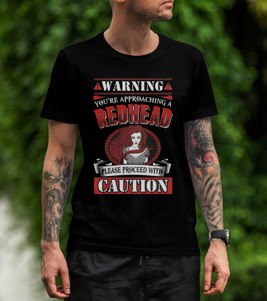 The WARNING YOU'RE APPROACHING A REDHEAD PLEASE PROCEED WITH CAUTION T-shirt is designed for everyday wear and a consistent fit. Fabric is pre-shrunk ring-spun cotton with durable stitching. See the size chart below for exact measurements.