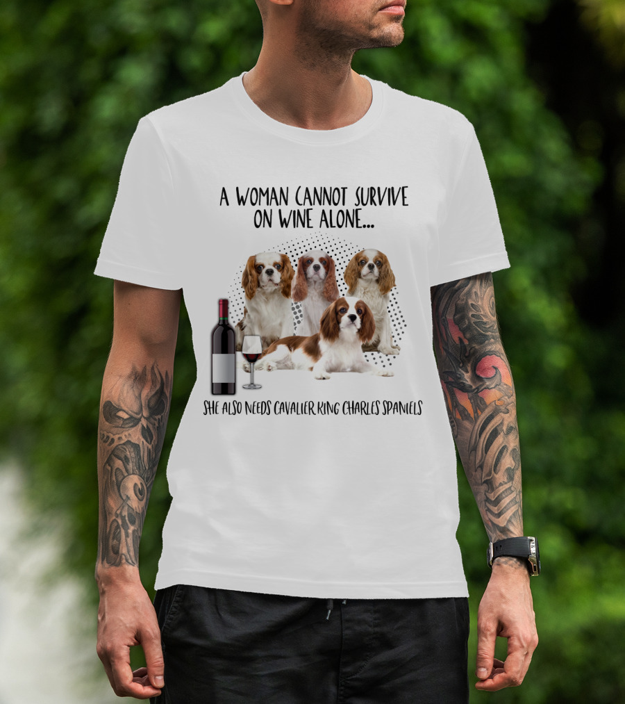 A Woman Cannot Survive On Wine Alone She Also Needs Cavalier King Charles Spaniels T-Shirt