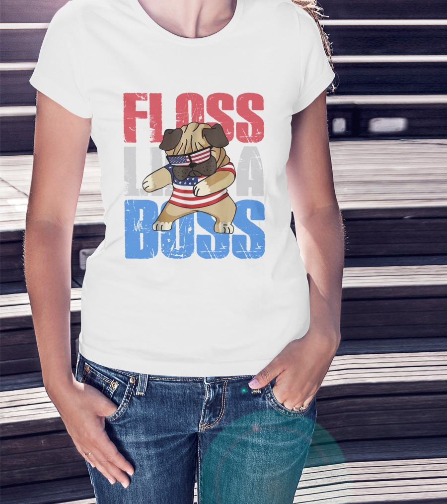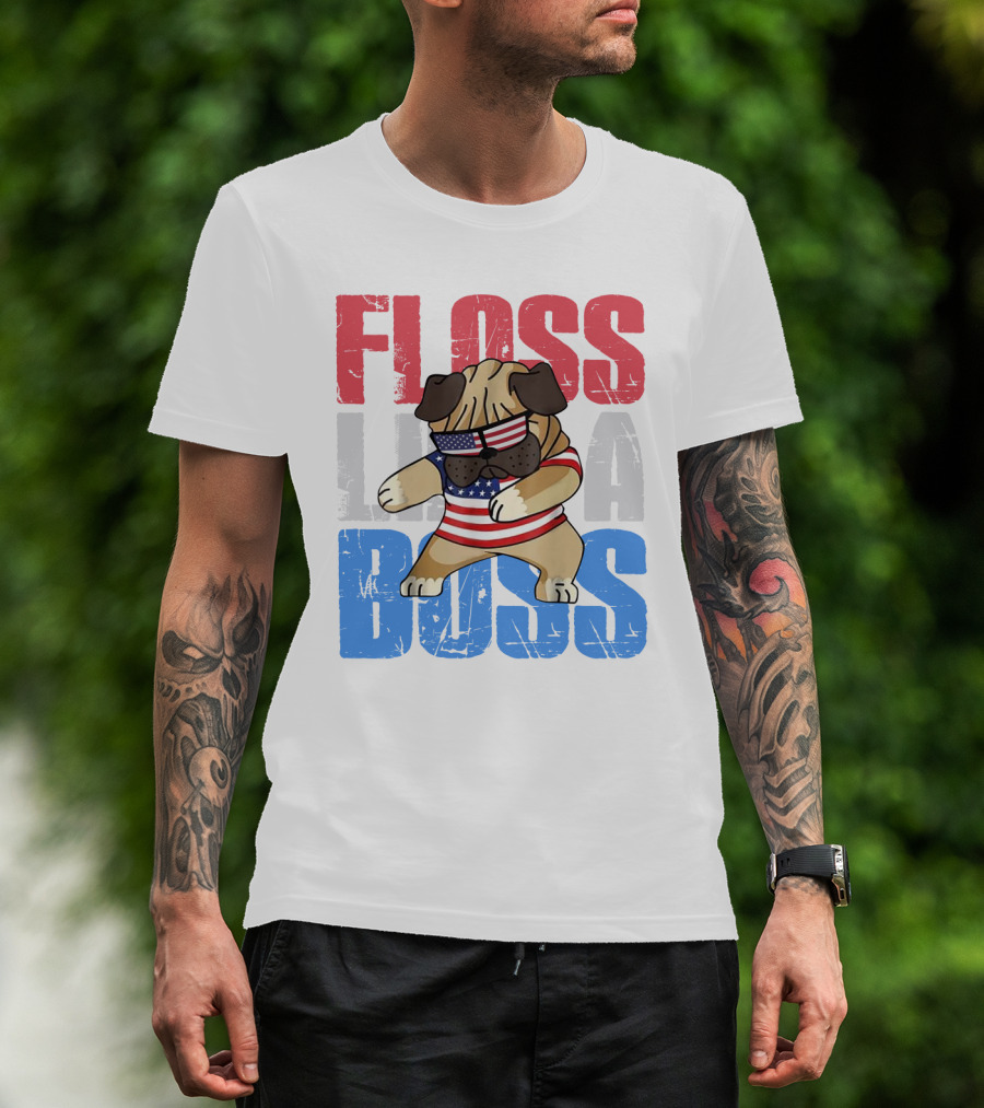 Floss Like A Boss American Flag Bulldog With Sunglasses T-Shirt