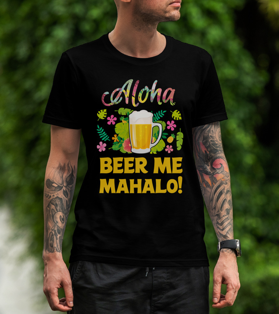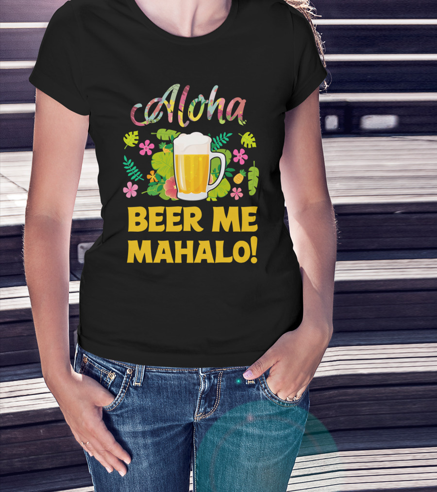 Aloha Beer Me Mahalo Tropical Flowers And Beer Mug T-Shirt