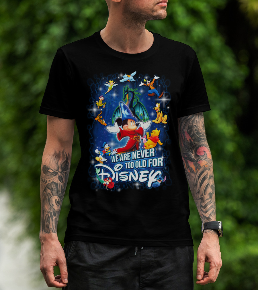 We Are Never Too Old For Disney Mickey Fantasia Characters T-Shirt