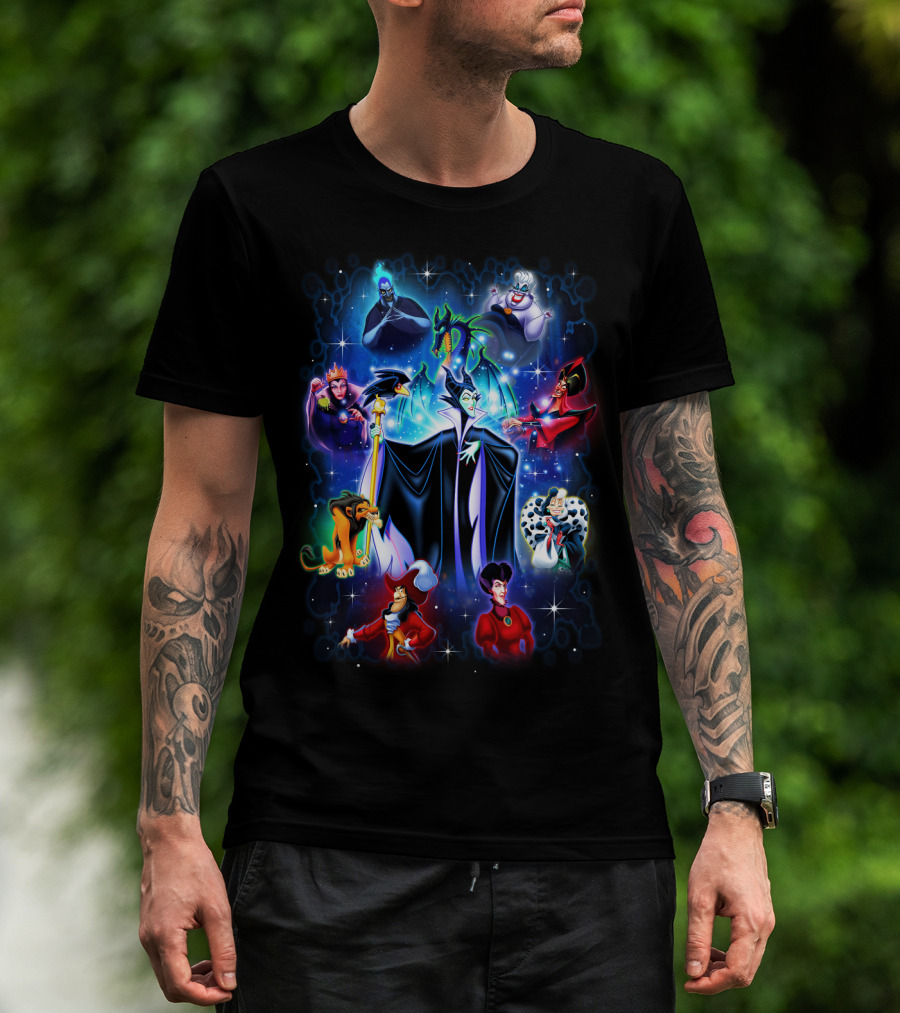 Disney Villains Maleficent Hades Ursula Scar Jafar Evil Queen Captain Hook Queen Of Hearts Cruella De Vil T-Shirt